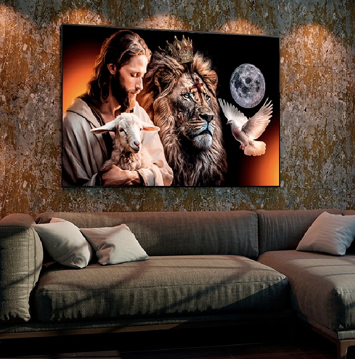 Quadro Decorativo Sala de Estar Pintura Leão e Jesus