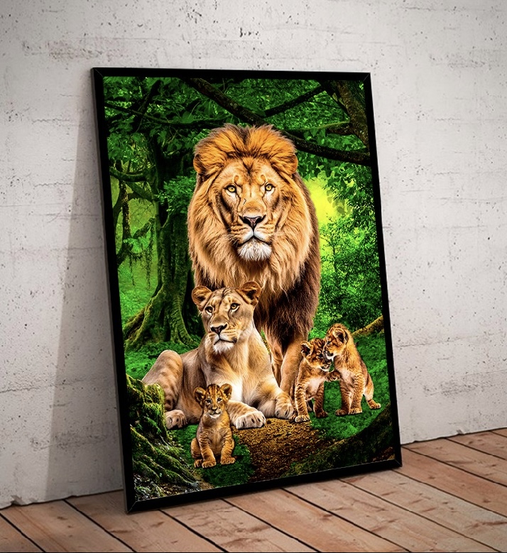Quadro Decorativo Sala de Estar Pintura Leão Com Filhotes