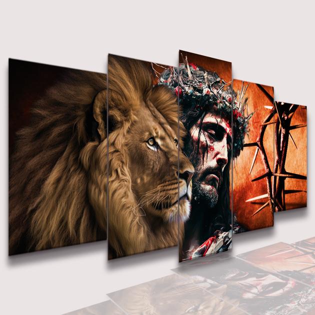 Mosaico 5 Peças para Sala Jesus Cristo Coroa de espinhos