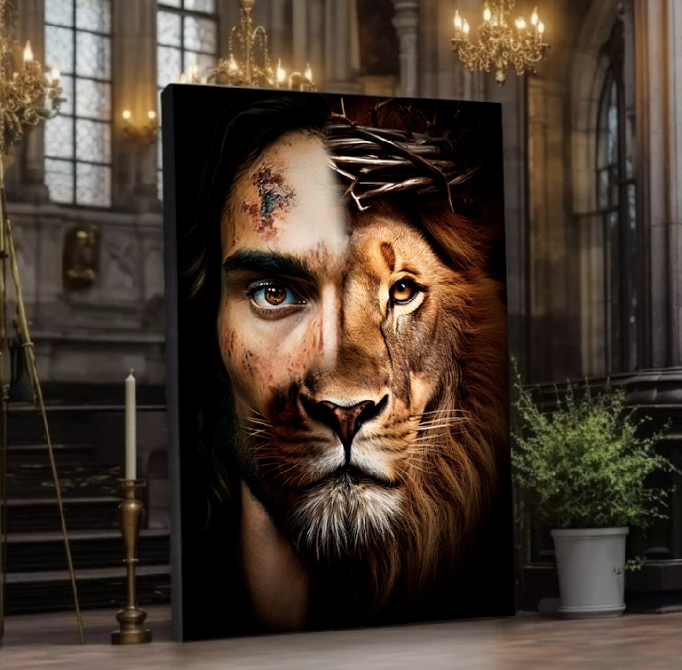 Quadro Decorativo Sala de Estar Pintura Leão com Jesus