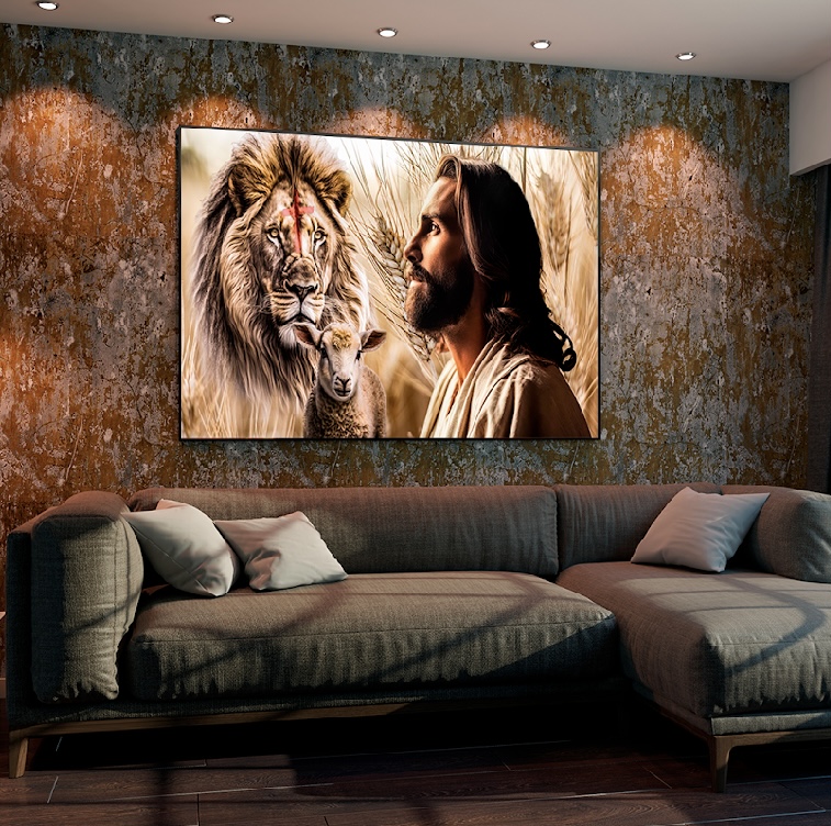 Quadro Decorativo Sala de Estar Pintura Leão e Jesus