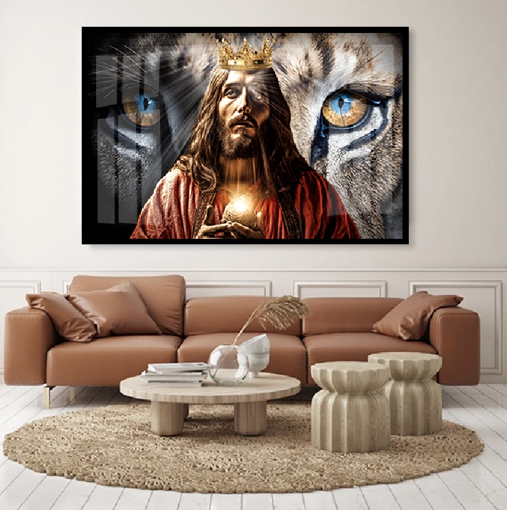 Quadro Decorativo Sala de Estar Pintura Leão e Jesus