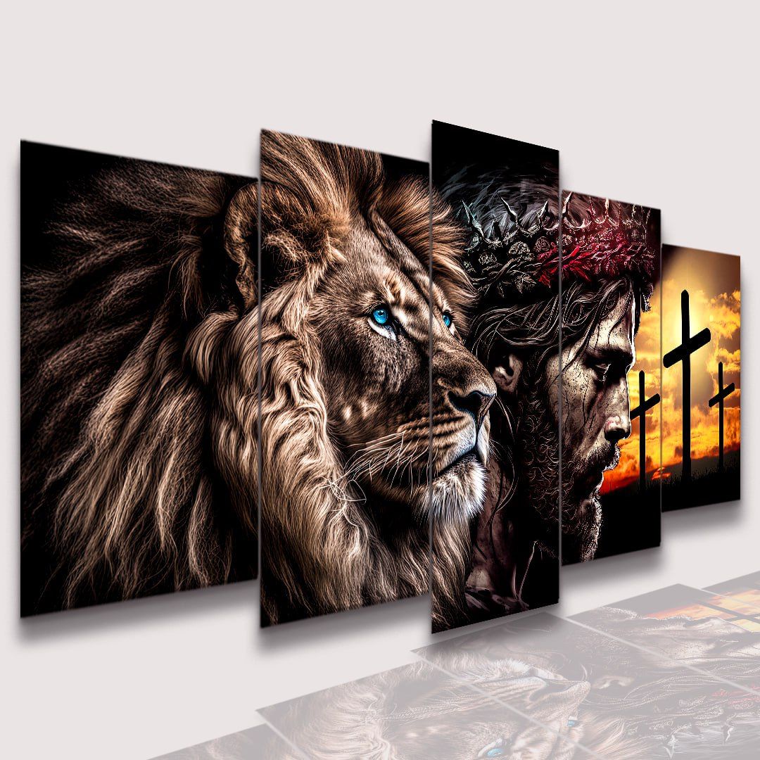 Mosaico 5 Peças para Sala Jesus com a Cruz e Leão Color