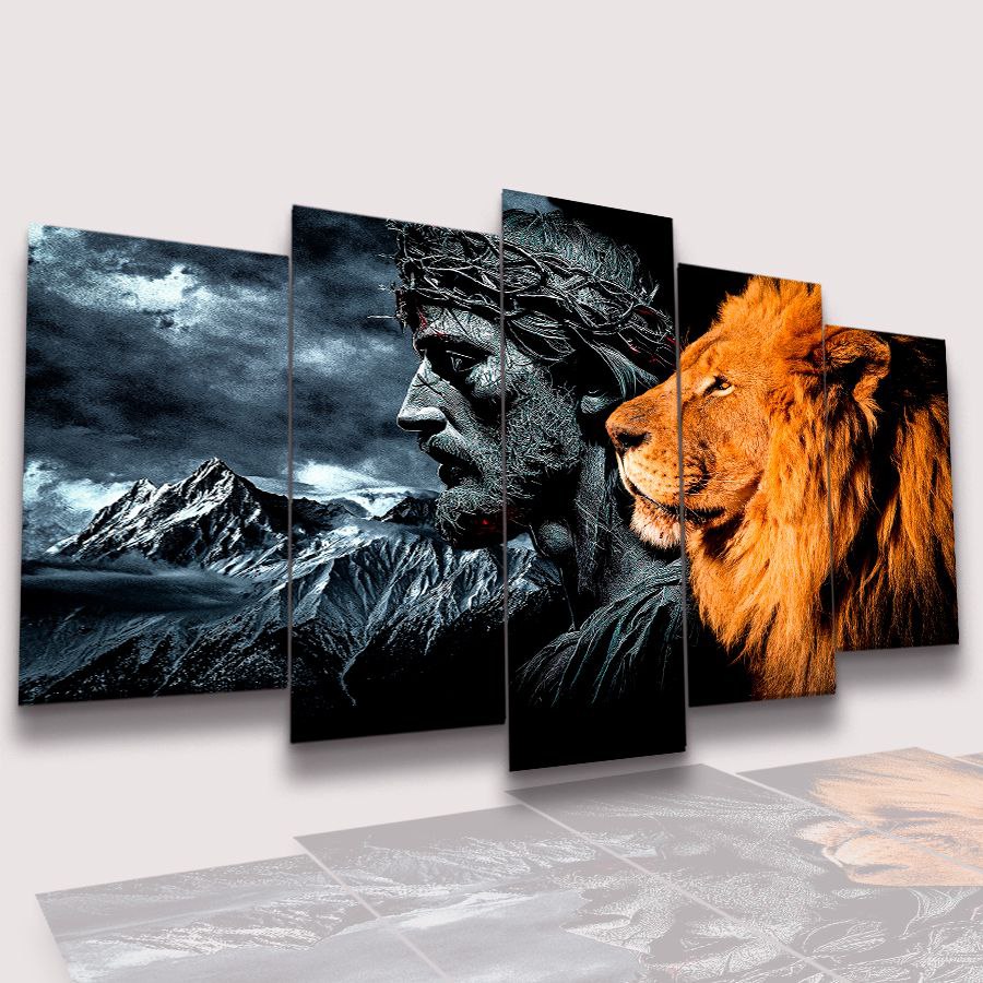 Mosaico 5 Peças para Sala Jesus Cristo Leão de Judá no Gelo