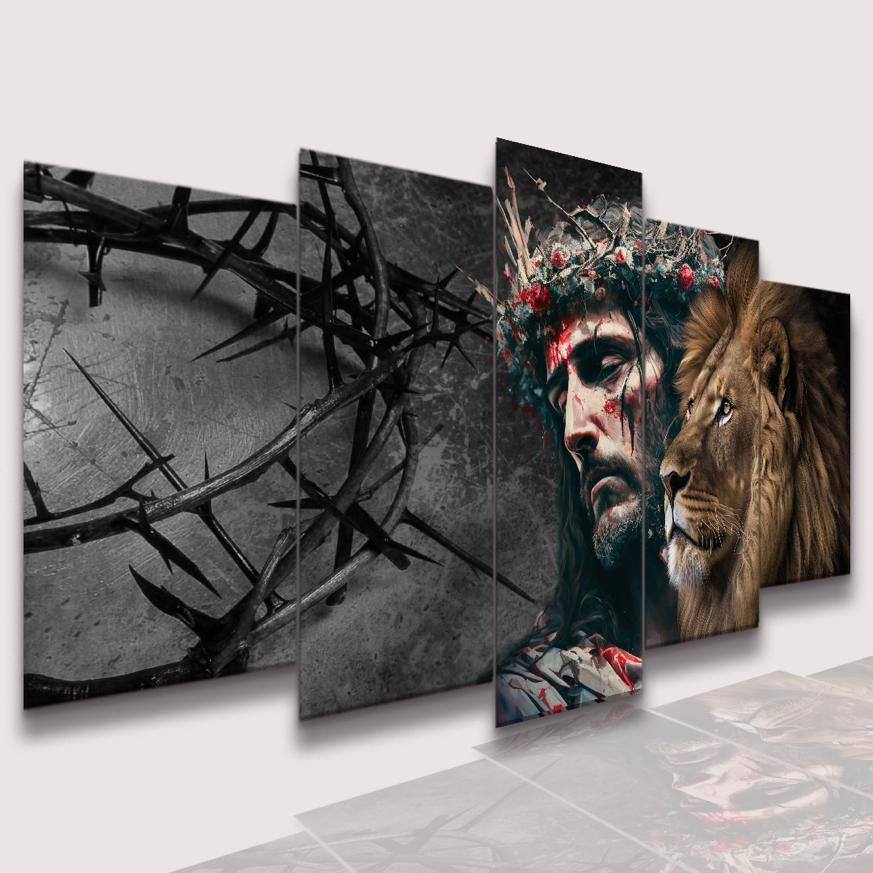 Mosaico 5 Peças para Sala Jesus e Coroa de Espinhos