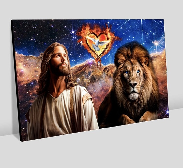 Quadro Decorativo Sala de Estar Pintura Leão e Jesus