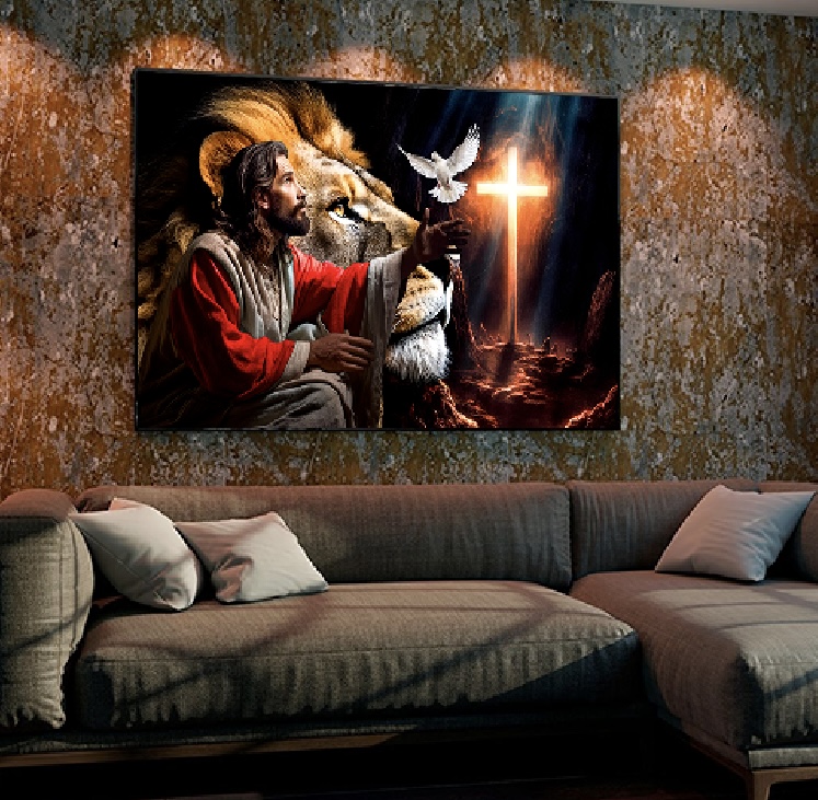 Quadro Decorativo Sala de Estar Pintura Leão e Jesus