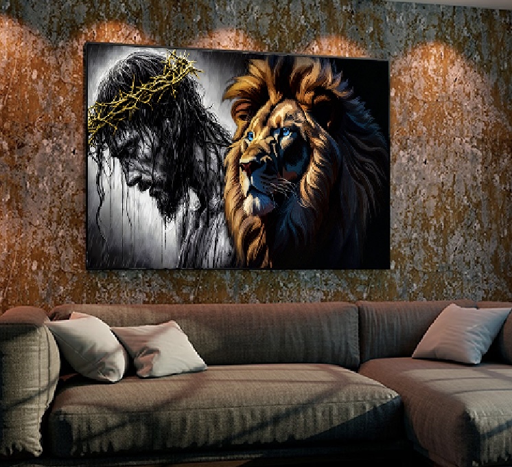 Quadro Decorativo Sala de Estar Pintura Leão e Jesus